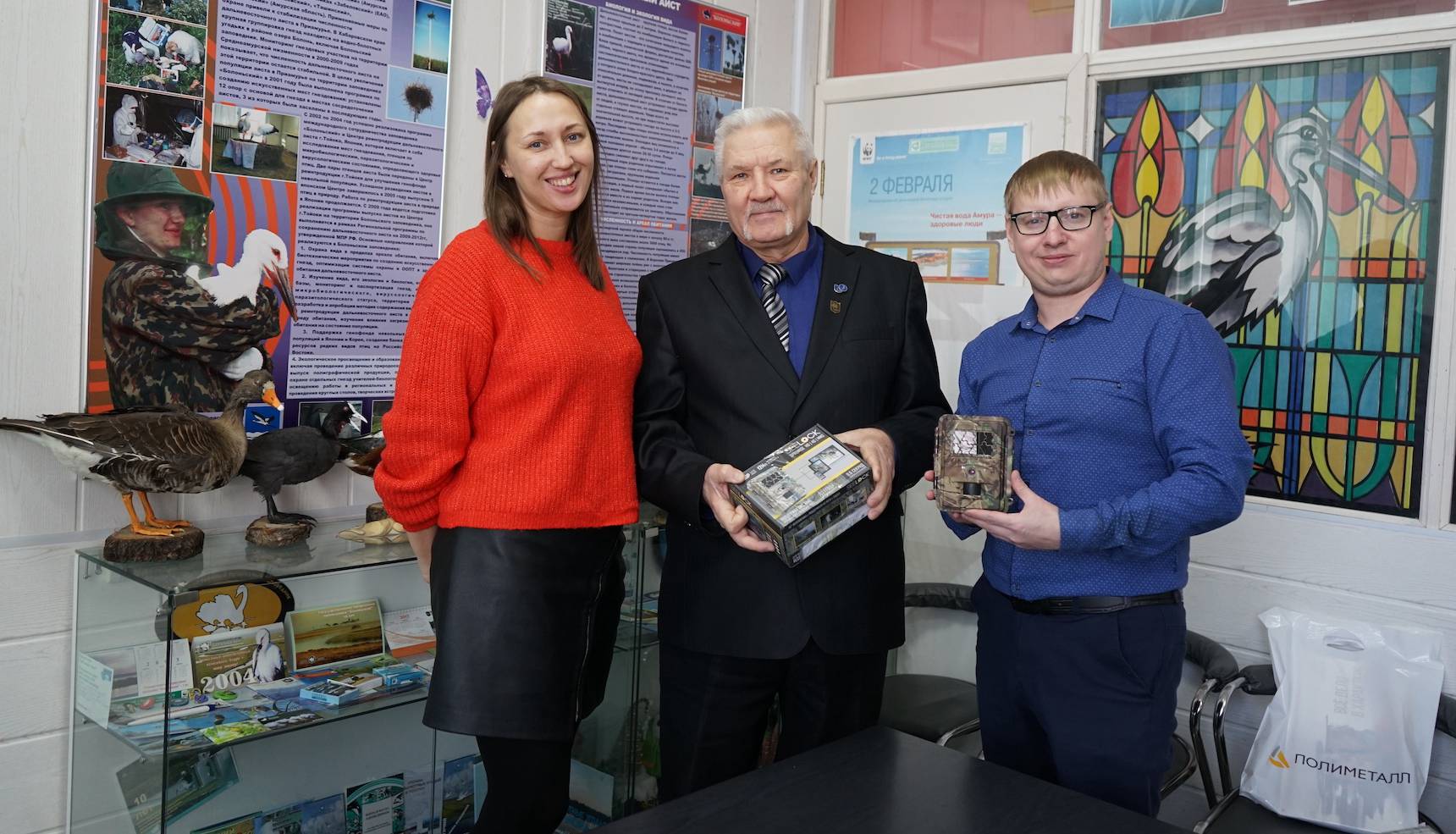 В этом году компания «Полиметалл» помогла Болоньскому заповеднику приобрести две автономные видеокамеры, фотоловушки и цифровой проектор. Передачу оборудования приурочили к Всероссийскому дню заповедников и национальных парков, который отмечается 11 января. Видеокамеры планируют установить на опорах возле гнезд дальневосточных аистов для наблюдения и сбора научной информации о жизни краснокнижных птиц. По предварительным данным, сейчас в заповеднике расположено не менее 20 гнезд аистов, общее число особей — около 80.