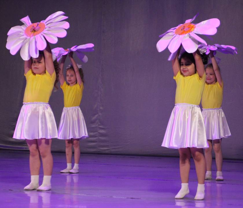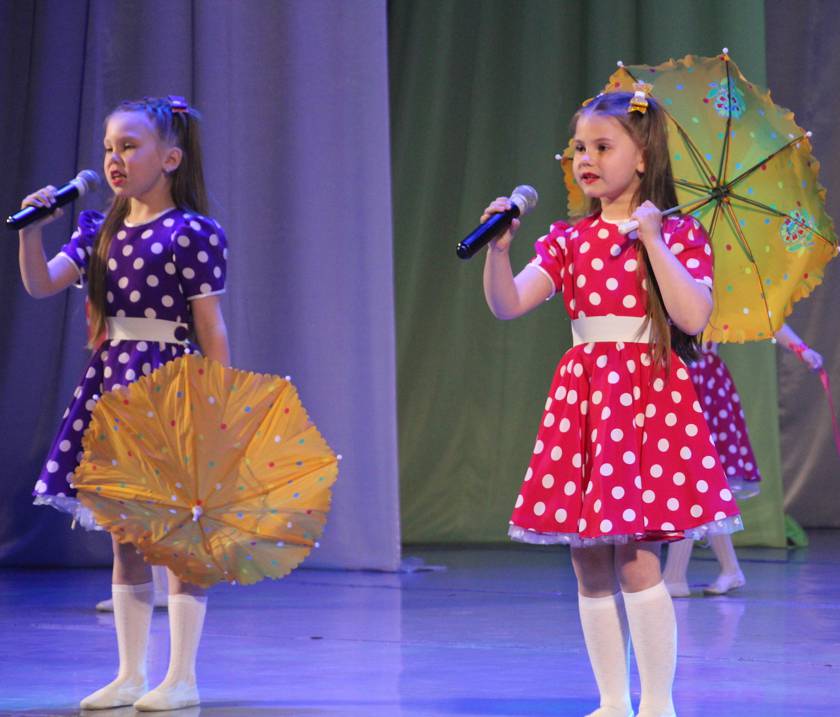 Ребята из девятого детского сада представили атмосферный танец «Дождь в ладошках». Впечатление от него усиливал тот факт, что за окном в этот момент действительно была дождливая погода, и многие пришли во Дворец культуры с зонтами.