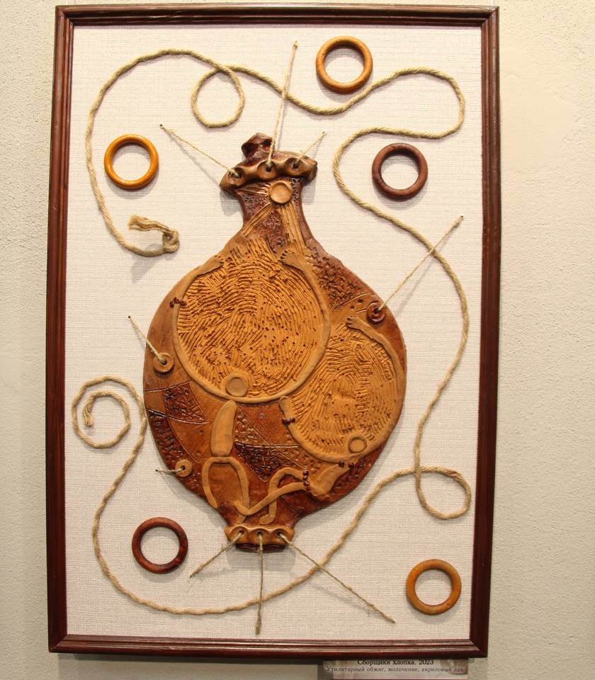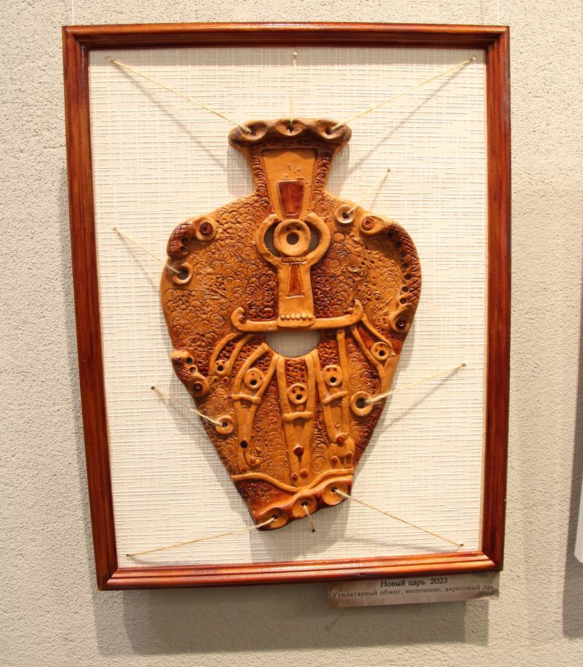 — На глине можно рисовать не только палочками, но и делать оттиски листьями, веревками. Я даже сыпал пшено и рис для создания фактуры. Каждую свою картину заключил в определенный сосуд. Это неспроста: именно с такой формой у меня ассоциируется человек. Я тоже своего рода сосуд. У меня есть мысли, чувства, волнения.