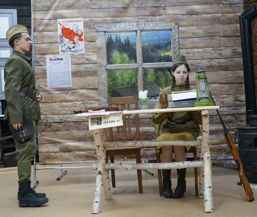 Торжественное мероприятие по случаю Дня Победы сотрудники музея в этом году посвятили военным корреспондентам. Ведь все эти долгие четыре года военкоры трудились на фронтах наравне с бойцами, чтобы донести до людей весточку с полей сражений. Прифронтовые газеты рассказывали о героизме и подвигах советских солдат, публиковали вести о земляках, доблестно защищавших Родину, и множество фронтовых писем. Именно такие заметки и очерки сохранились до наших дней, как летопись Великой Отечественной войны.