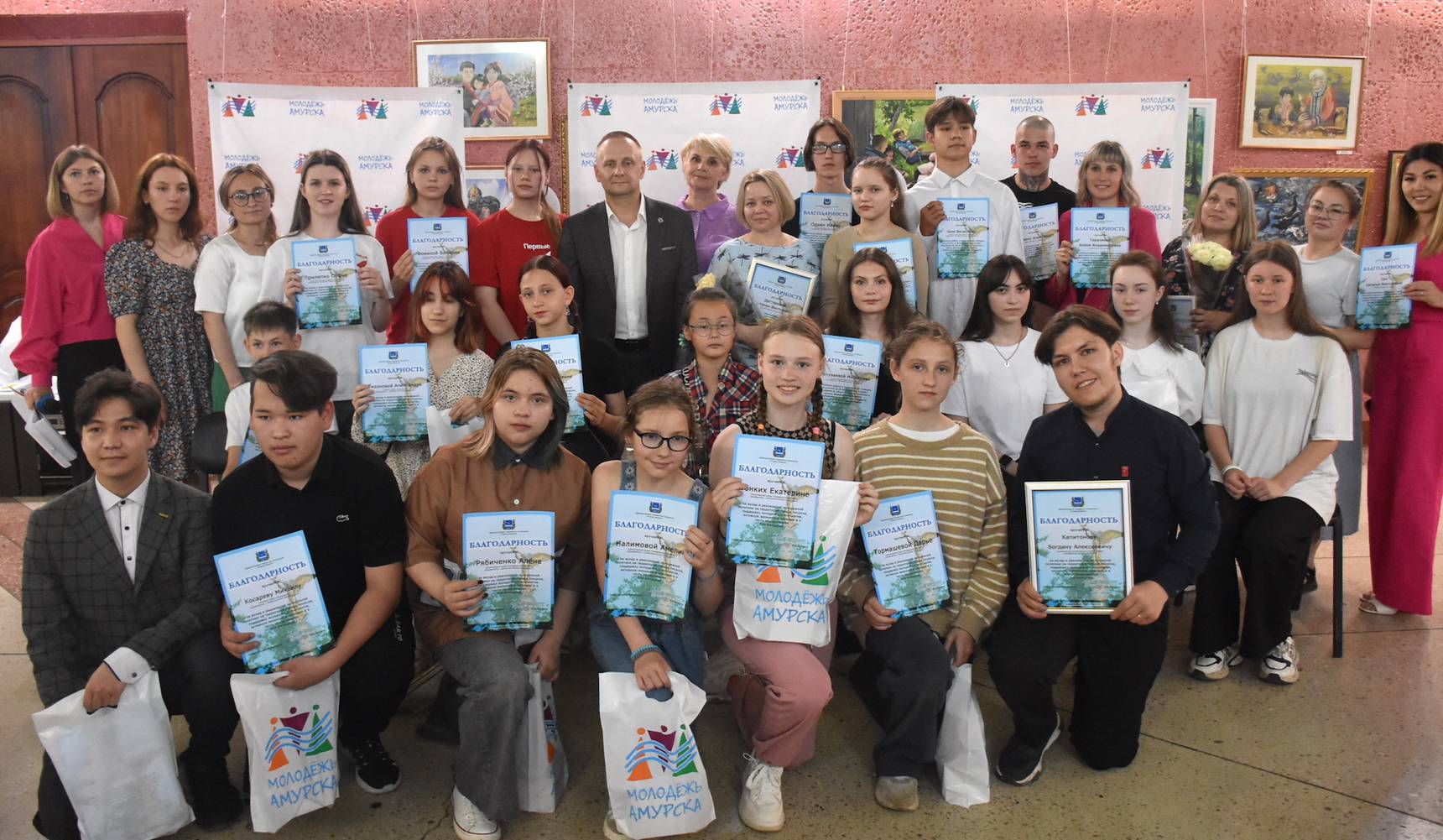 Глава Амурска Сергей Семенов наградил талантливую молодежь в честь ее праздника. Благодарности получили волонтеры и их наставники.