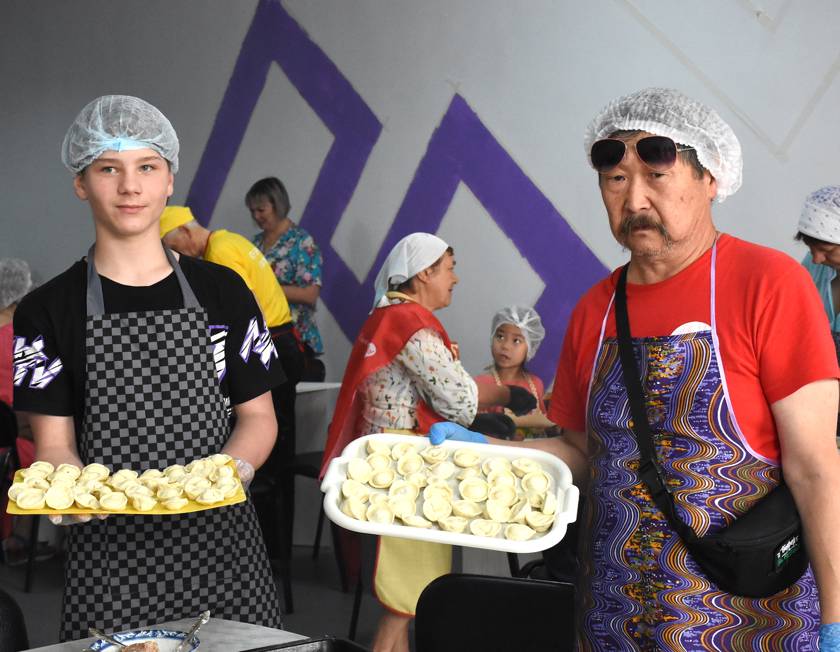 С начинкой для пельменей помогли спонсоры мероприятия — Валерий Постельник и Олег Исаков, предоставившие мясной и рыбный фарш. Муку, яйца, сливочное масло и одноразовую посуду закупили работники отдела по развитию молодежной политики, а огурцы и зелень принесли серебряные волонтеры.