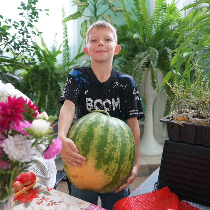 А вот семья Цуцура каждый год удивляет гостей и членов жюри своими арбузами необъятных размеров. Самый большой за сезон как раз уродился к ярмарке, его вес достигает больше четырнадцати килограммов. Но и это далеко не предел, говорят супруги. Бывало и круче.