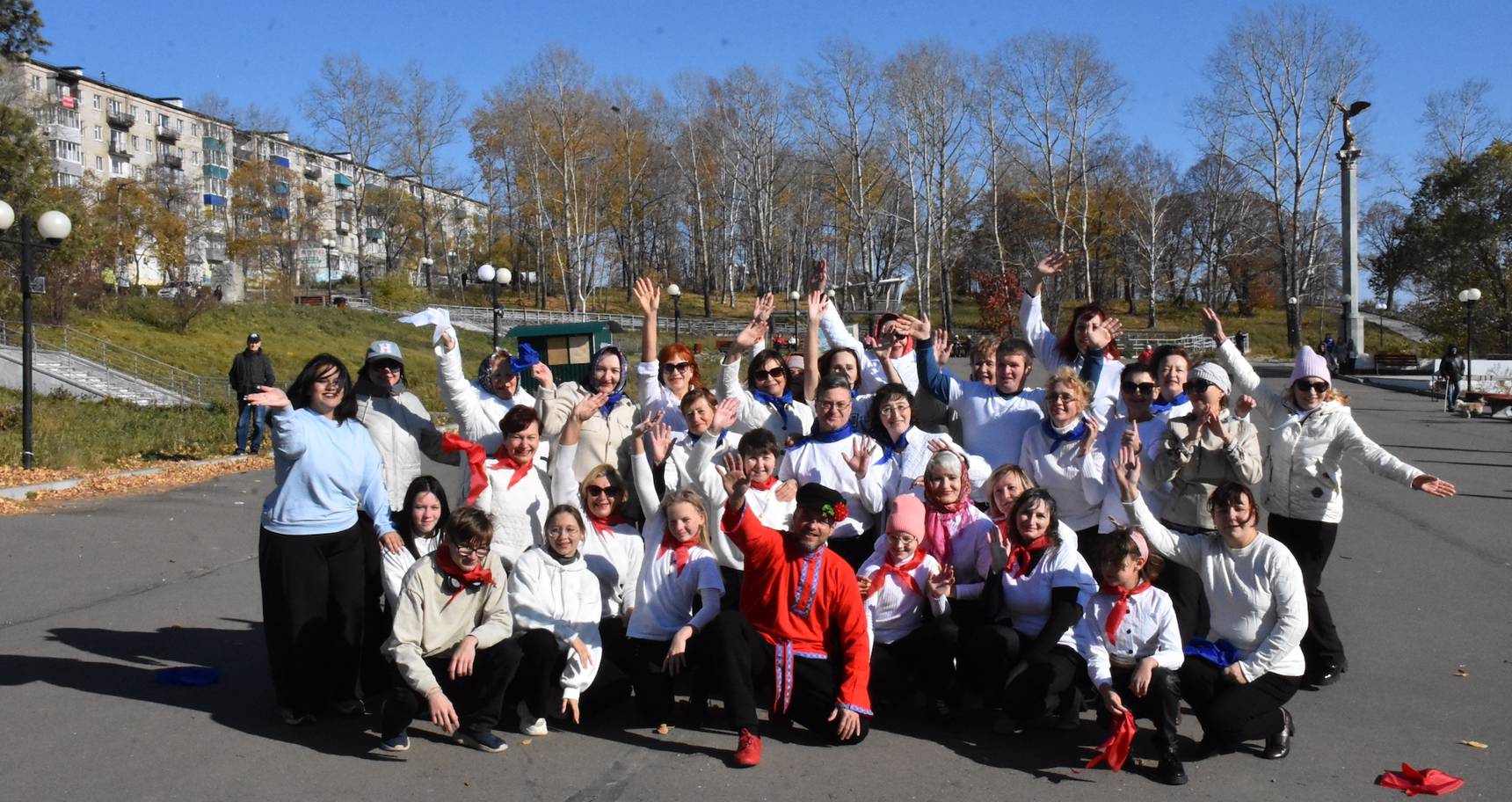 — Хотя мы и живем далековато от центра страны, это не мешает нам принимать участие во всероссийских мероприятиях. В интернете я увидел ролик, состоящий из нарезок из разных городов. Движения везде почти одинаковые, под песню «Матушка-земля». Мы тоже решили повторить выступление. Можем с гордостью сказать, что у нас в Амурске было больше всего участников — около 40 человек. Приятно, что амурчане поддержали нас. Хореографию я немного подкорректировал под наших участников, но в целом она не изменилась. Многие люди, которые никогда не танцевали, хорошо выступили.