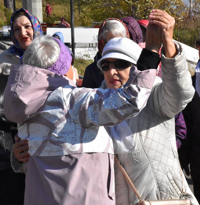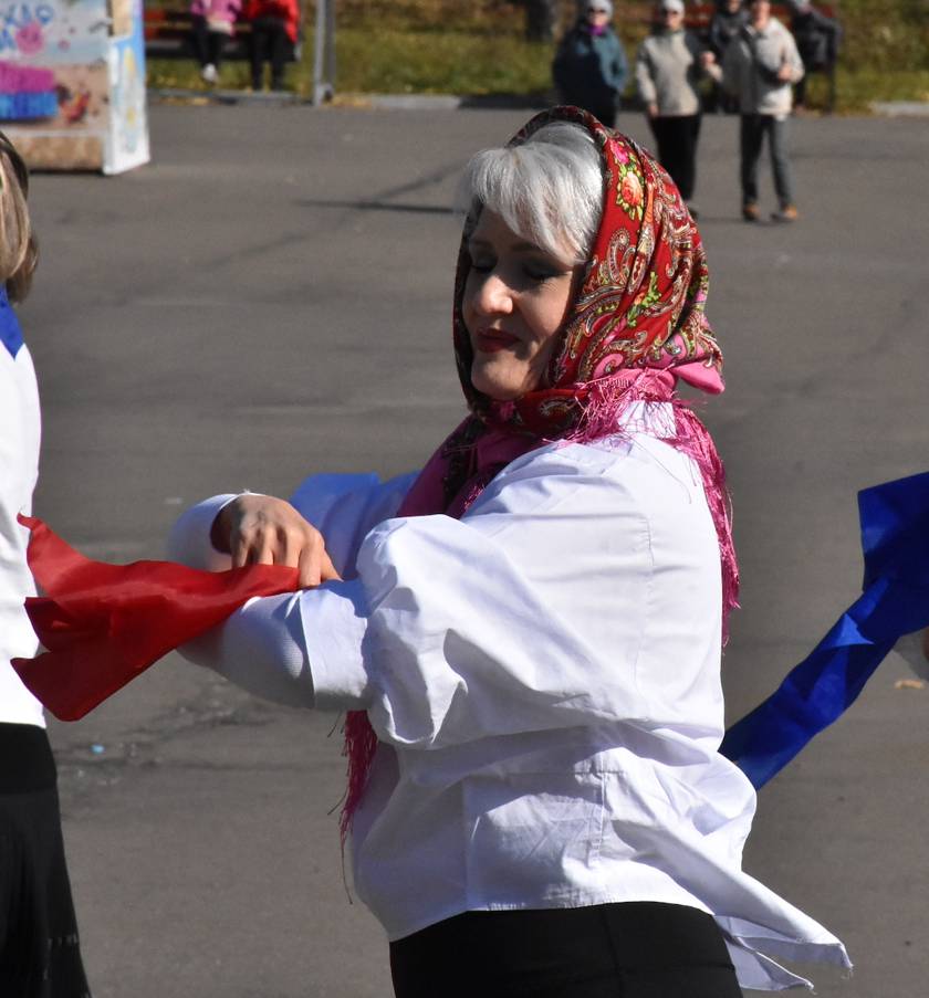 Флэшмоб так понравился зрителям и участникам, что его повторили на бис. После этого все желающие могли спеть под сопровождение аккордеона. Прозвучали такие композиции, как «Валенки», «Виновата ли я», «Одинокая гармонь», «Кадриль». Во время исполнения лирической песни «Тонкая рябина» женщины надели на головы платки для создания антуража. Организовала все это Татьяна Бабенко.