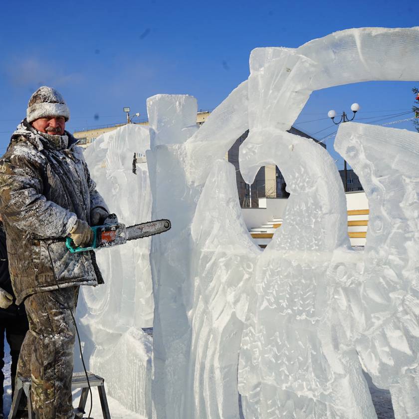 Ежегодно украшением зимнего новогоднего городка становится не только нарядная елка, но и разнообразные ледяные скульптуры. Всего за один день, благодаря творческому подходу и умелым рукам мастеров, десятки огромных ледяных кубов превратились в изящные композиции. Каждый раз участники конкурса «Волшебные узоры» стараются придумать что-то новое и необычное, но в едином жанре. В этом году художники подарили амурчанам птиц счастья.