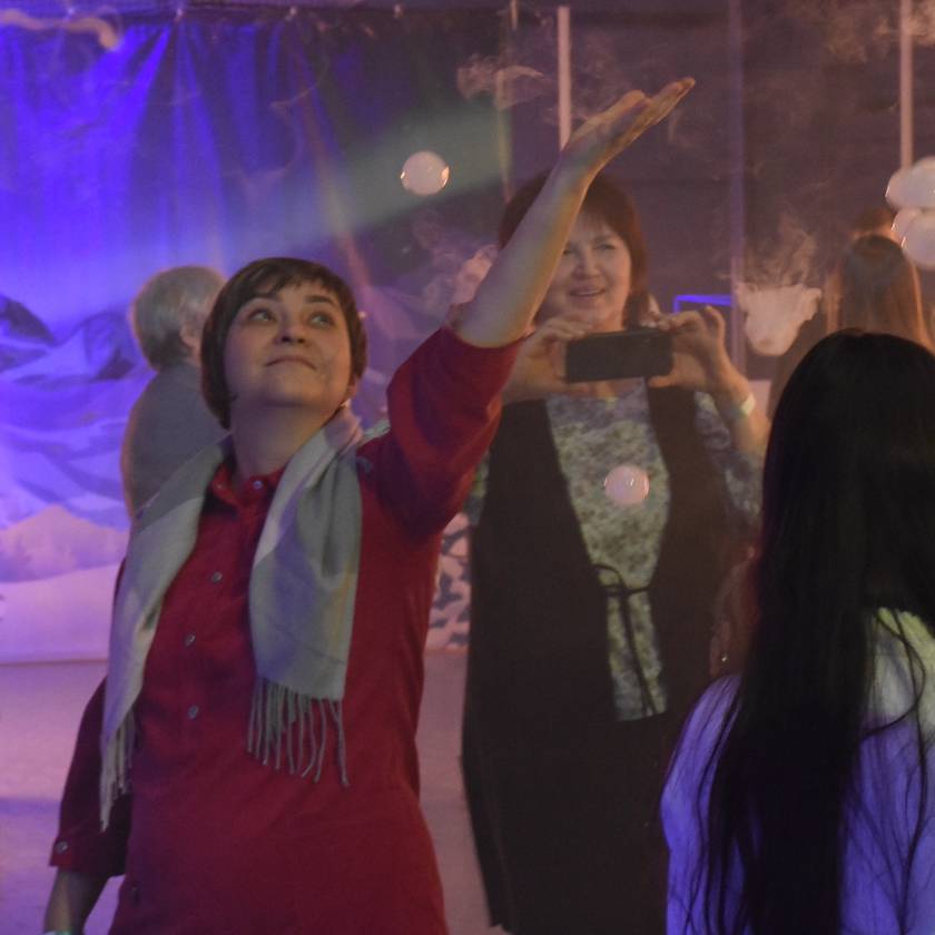 В этом году ледовую арену комплекса разбили на две части. В одной организовали фотозоны, а в другой демонстрировался спектакль, и часть зрителей разместились на стульях, установленных на специальном покрытии, прямо на ледовой арене.