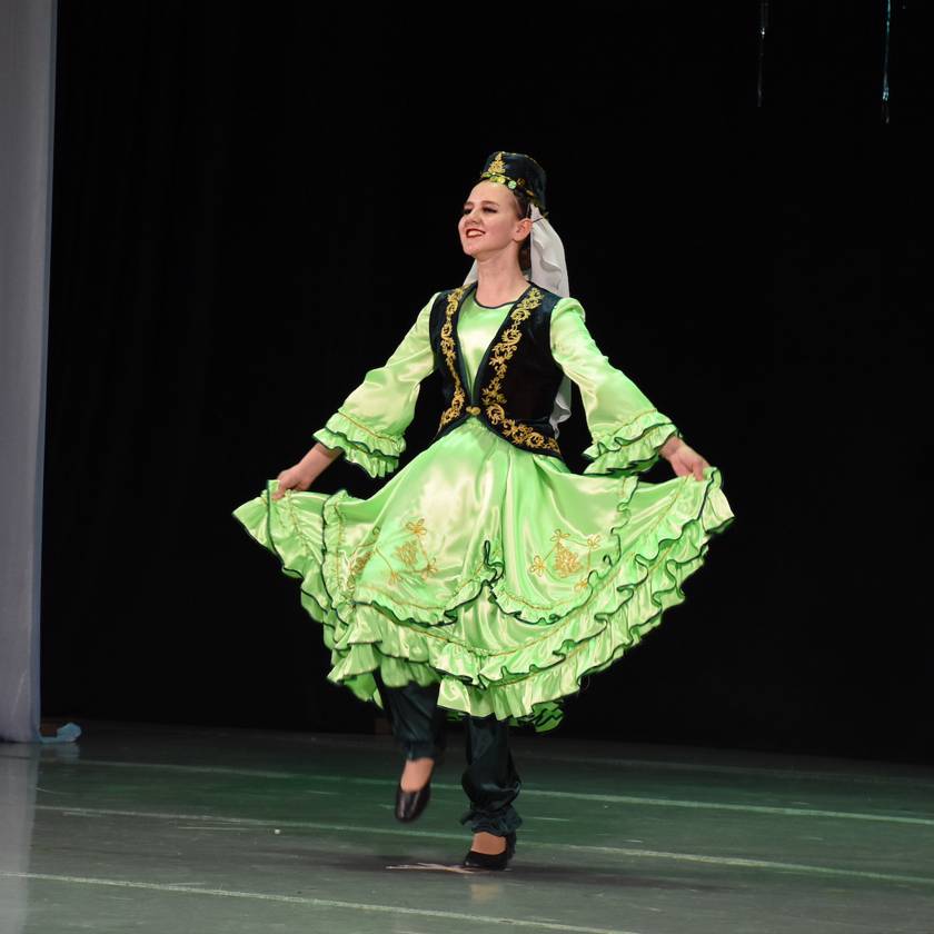 В концертную программу вошли как общие номера, так и соло. Солистка Анастасия Куркулова выступила с задорным татарским танцем «Попрыгунья». Номер появился в коллективе несколько лет назад, и в настоящее время у него новая исполнительница.