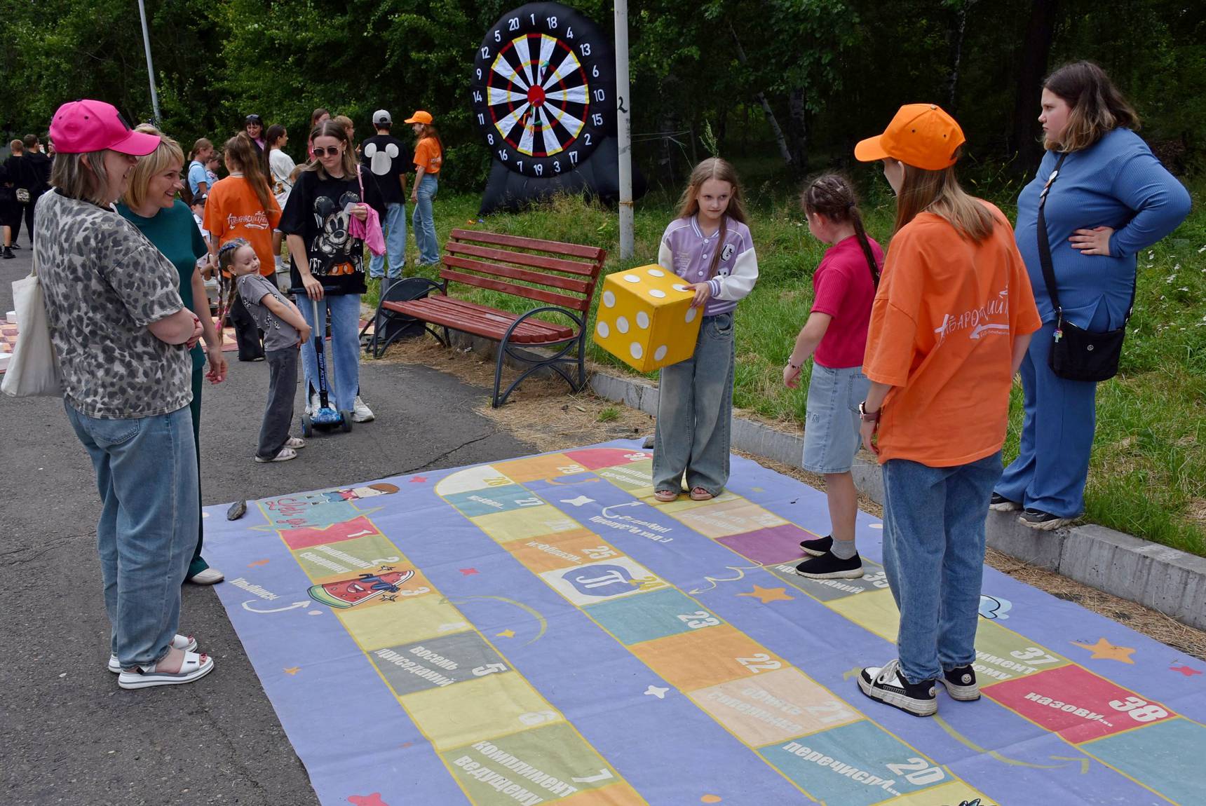 В этом году можно было посоревноваться на площадках с гигантским надувным спортивным оборудованием. Например, попасть мягким дротиком в мишень или перекатить с одного места на другое снаряды в виде автомобильных колес. Неподалеку от баскетбольной площадки разместились гигантские игры: шашки и бродилка, в которой вместо фишек по полю передвигались люди, а вот количество ходов определял огромный кубик, который нужно было бросать.