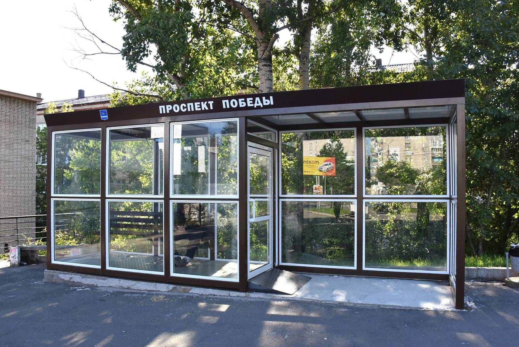 Согласно договору, установлены пять современных конструкций. Они располагаются на Набережной, напротив Доски почетных граждан, у кинотеатра «Молодость», возле Дворца культуры и на проспекте Победы. В настоящее время работы завершены. На каждом павильоне размещена надпись с названием автобусной остановки. Все буквы были сделаны отдельно из акрила при помощи 3D-принтера.