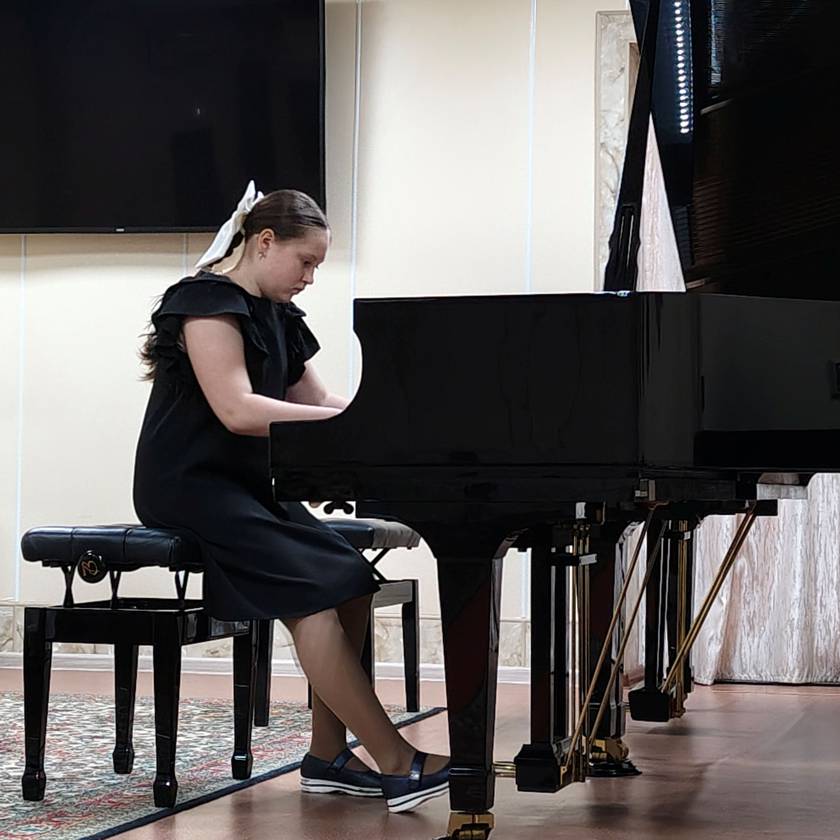 — Больше всего мне нравится играть Шопена, - признается участница. – Он мелодичный и по своему размеру напоминает вальс. Самым сложным произведением на конкурсе пианистов в этом году у меня был «Этюд №6» Мощковского. У него очень быстрый темп. К конкурсу готовилась основательно, уделяя занятиям музыкой около трёх часов в день. Благодаря обучению в школе не только хорошо играю известные произведения классиков, но и сочиняю свои, много импровизирую.