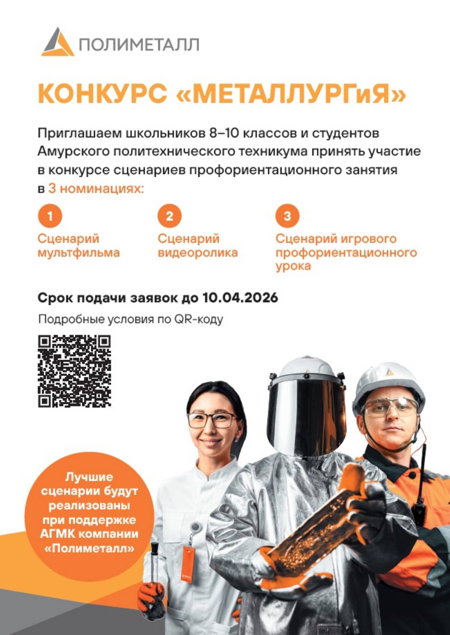 Амурский гидрометаллургический комбинат (АГМК) компании «Полиметалл» приглашает учащихся 8–10 классов школ Амурска и Амурского района, а также студентов Амурского Политехнического техникума принять участие в творческом конкурсе!