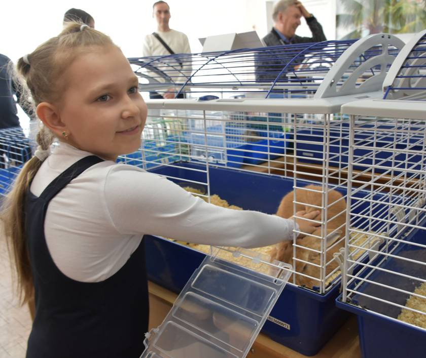 Появились в новом живом уголке и информационные стенды – о том, чем кормить зверей и как за ними ухаживать. А его обитатели по-прежнему остаются звёздами интерактивных уроков. Например, белый кролик был одним из символов квеста ко Дню космонавтики: дети проходили по станциям, получали морковку и кабачки, а в конце делали угощение для Лунного кролика.