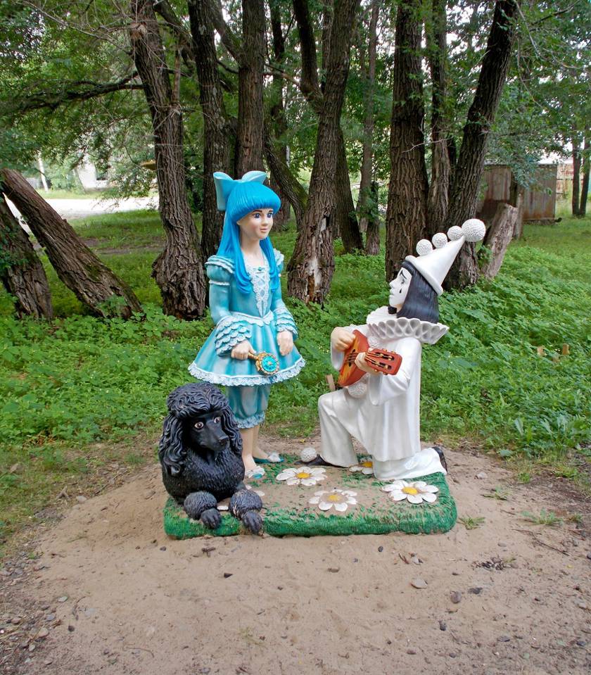 Гуляешь в парке около эльбанского Дома культуры и встречаешь... Пьеро, который преклонил колено перед Мальвиной. Чуть дальше — Заяц и Волк из «Ну, погоди!». Рядом с детской площадкой добрый Медведь дарит подарок Маше, а Кот Леопольд в который раз призывает: «Ребята, давайте жить дружно!». Как появились в парке фигуры любимых героев, рассказала директор ДК Ольга Лисенкова.