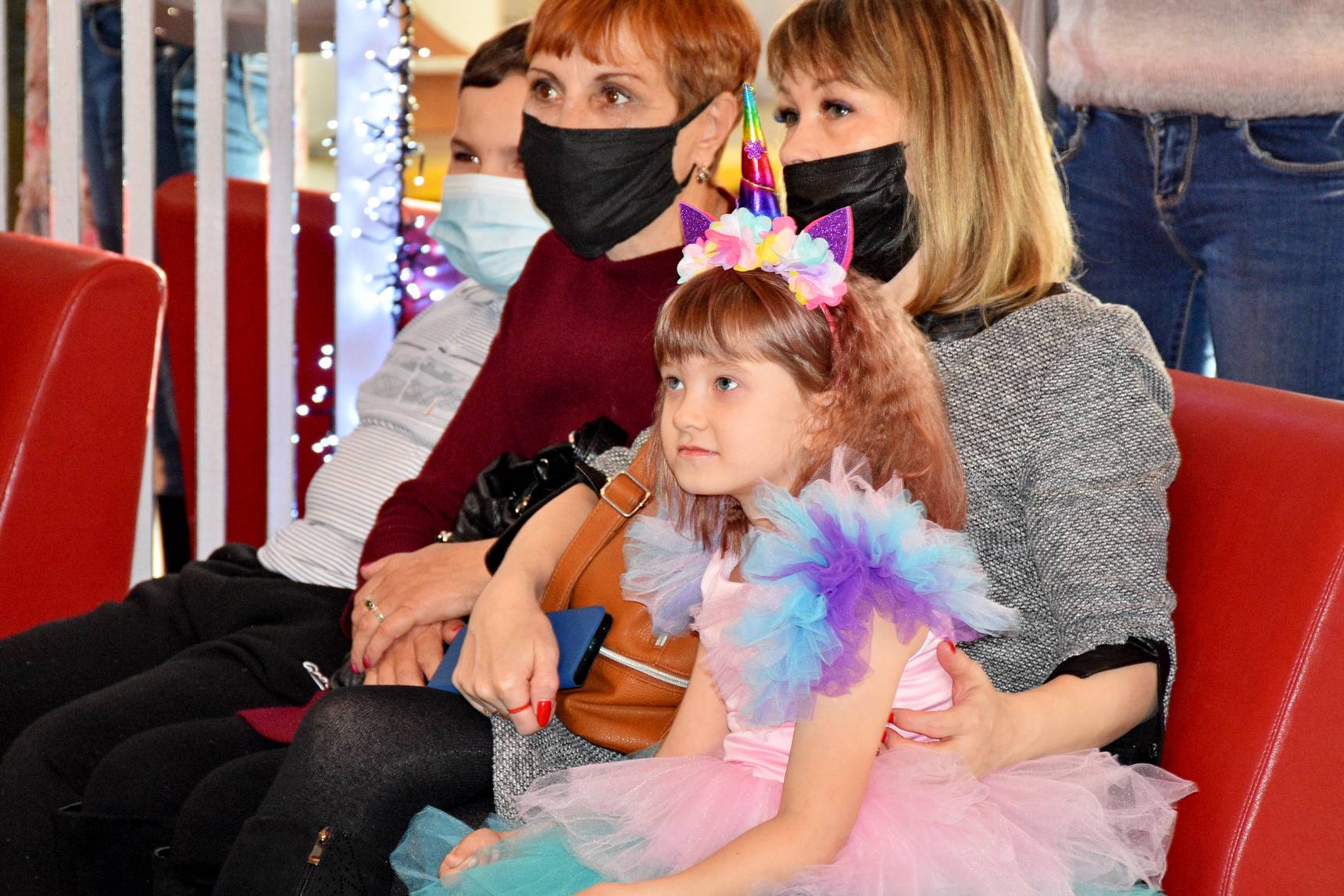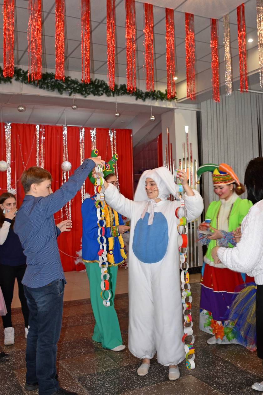 На праздник вместе с родителями пришли прекрасные принцессы, единороги, супермены, пираты и даже одна панда. Пока ребята с нетерпением ждали Дедушку Мороза, их развлекали аниматоры. Вместе с ними дети сделали новогодние гирлянды, которыми потом украсили елочку.
