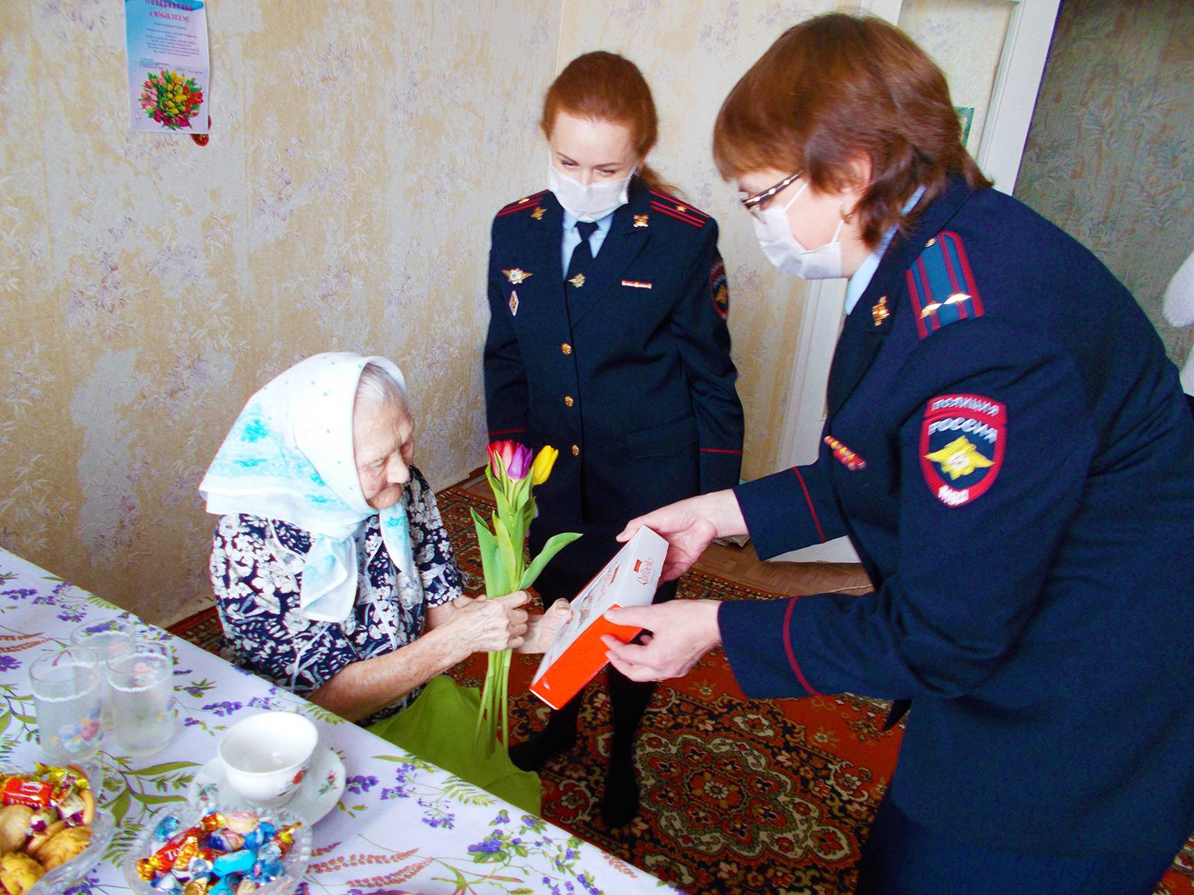 В гости к долгожительнице пришли заместитель начальника отдела по вопросам миграции ОМВД по Амурскому района Татьяна Акимова и старший инспектор Юлия Егорова. Они поздравили Клавдию Прокопьеву с прошедшим Днем рождения и праздником весны.