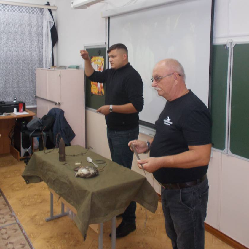 — Еще перед поездкой в «Школу поисковика» экскурсовод Ольга Киршова провела для ребят занятие. Оно было очень полезным, и такая совместная работа будет продолжена, — говорит Николай. — Мы с Ольгой Петровной запланировали выступление наших ребят перед аудиторией. У нас каждое лето проходит «Школа поисковика» и экспедиция. И каждый раз нам передают найденные предметы, которые не опасны, но представляют историческую ценность. Мы выложим то, что у нас есть и то, что передаст региональное отделение. Готовы привозить находки и рассказывать о них.