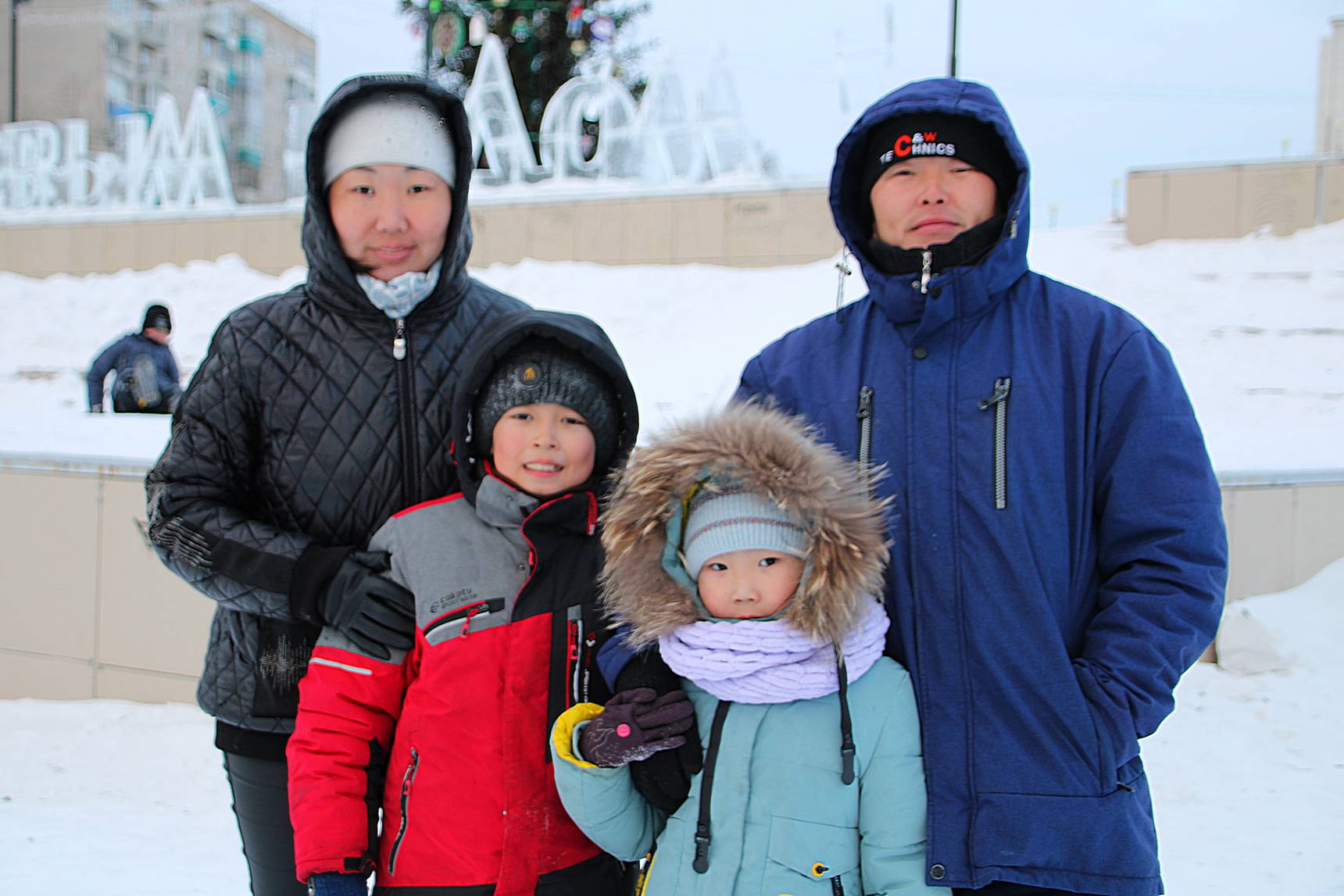 — Детям весело, и это самое главное, — отметили Ольга и Виктор, амурчане. — Нравится, что елка в Амурске натуральная. Это не только атмосфера, но и запах праздника. Думаю, что главное место – это, конечно же, горка. Только посмотрите, какая очередь выстраивается, чтобы скатиться по ней. Приятно, что не только дети, но и взрослые резво мчатся вниз. Предновогоднее время удачно для того, чтобы вновь почувствовать себя детьми. Мы всей семьей готовимся встречать Год Кролика. Посещение зимнего городка — добрая традиция.