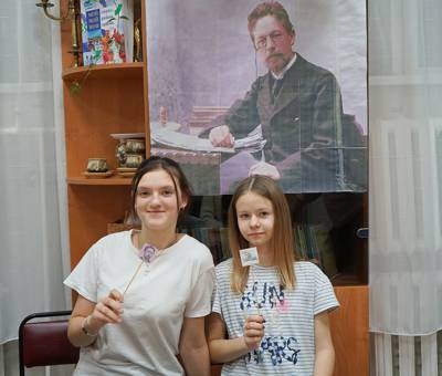 Также в рамках мероприятия школьники посетили имитированную амбулаторию Чехова, отведали одно из его любимых блюд — блины с вишней. Познакомились с главным увлечением Антона Павловича — филателией — и создали целую коллекцию марок с изображением главного героя литературного вечера.
