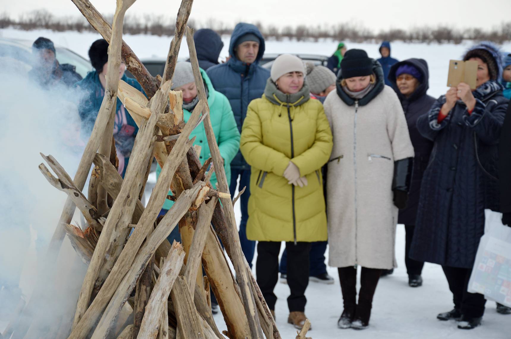 Праздник начался с обряда кормления огня. Для этого на берегу реки разложили большой костер. Участники обряда поднесли пламени ритуальное угощение и попросили у духов благосклонности, удачной охоты и рыбалки, счастья всем жителям села.