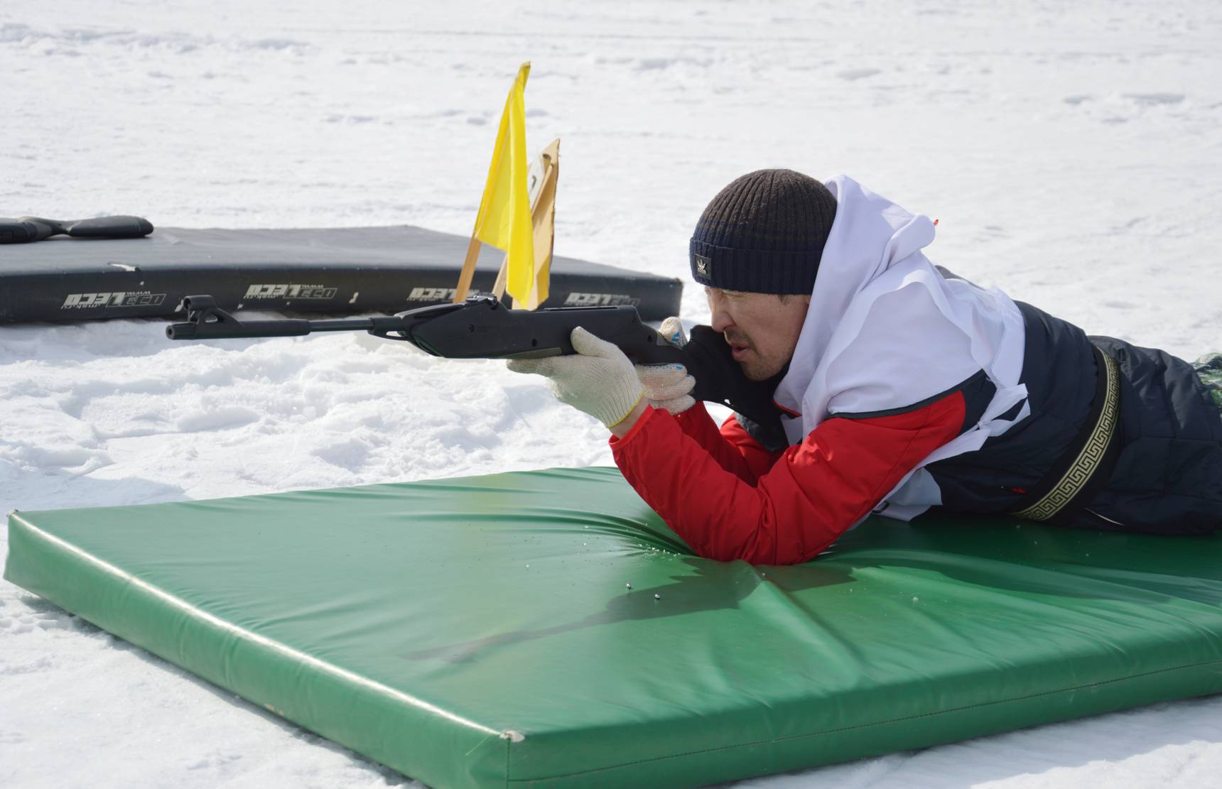 Поразить мишень диаметром 40 см с расстояния в 10 метров оказалось не так-то легко: из 13 участников в цель попали всего несколько человек. Проигравшие пообещали в следующем году взять реванш.