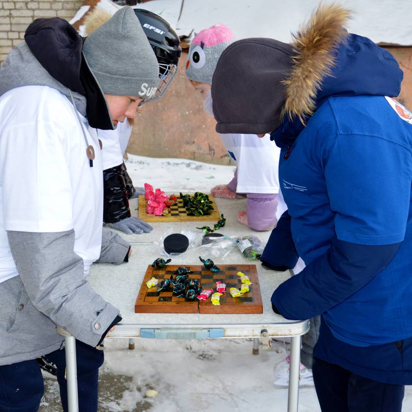 За пределами катка тоже кипела жизнь. Организаторы подготовили для гостей самые разные забавы: перетягивание каната и прыжки через него, катание на санях и большой лыже, шашки, шахматы, и даже мастер-класс по ходьбе на ходулях . А в завершение фестиваля уставших, но довольных участников напоили чаем с пиццей и сладостями.