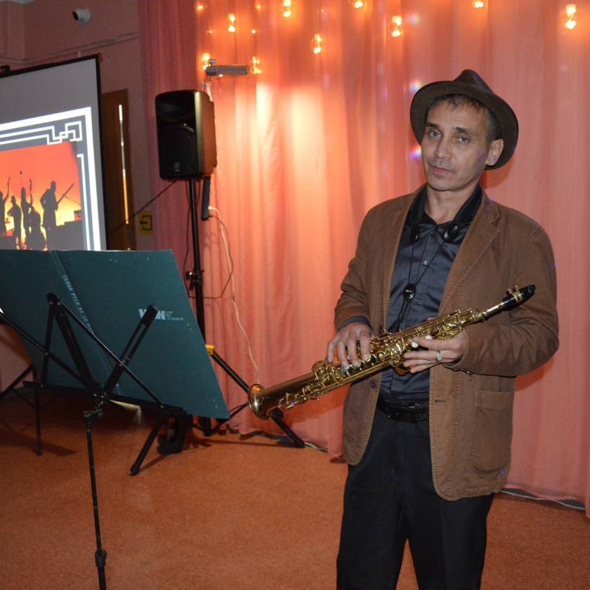 После этого гостям было предложено насладиться чарующими звуками саксофона в исполнении Сергея Куповых и обсудить произведение. А позже вечер стал еще более интересным: гостям было предложено разделиться на семейные кланы и пройти ряд конкурсных испытаний.