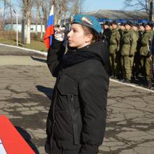 — Для детей сегодняшняя церемония — это как ритуал посвящения в настоящие армейцы. Многие из них будут связывать свою жизнь с армией и силовыми структурами. В нашем районе военно-патриотическое движение очень развито. В этом направлении у нас ведут работу 19 отрядов. Между собой они все соревнуются, учатся. Мы часто ездим в войсковые части на экскурсии, получаем военно-патриотически уроки. Стараемся взаимодействовать не только с местными силовыми структурами, но и со всеми военными подразделениями. Сегодня география нашего сотрудничества стала еще шире — к нам присоединился Комсомольск-на-Амуре.