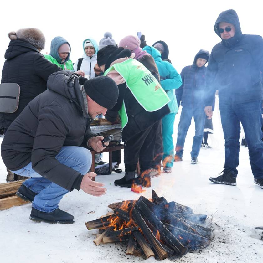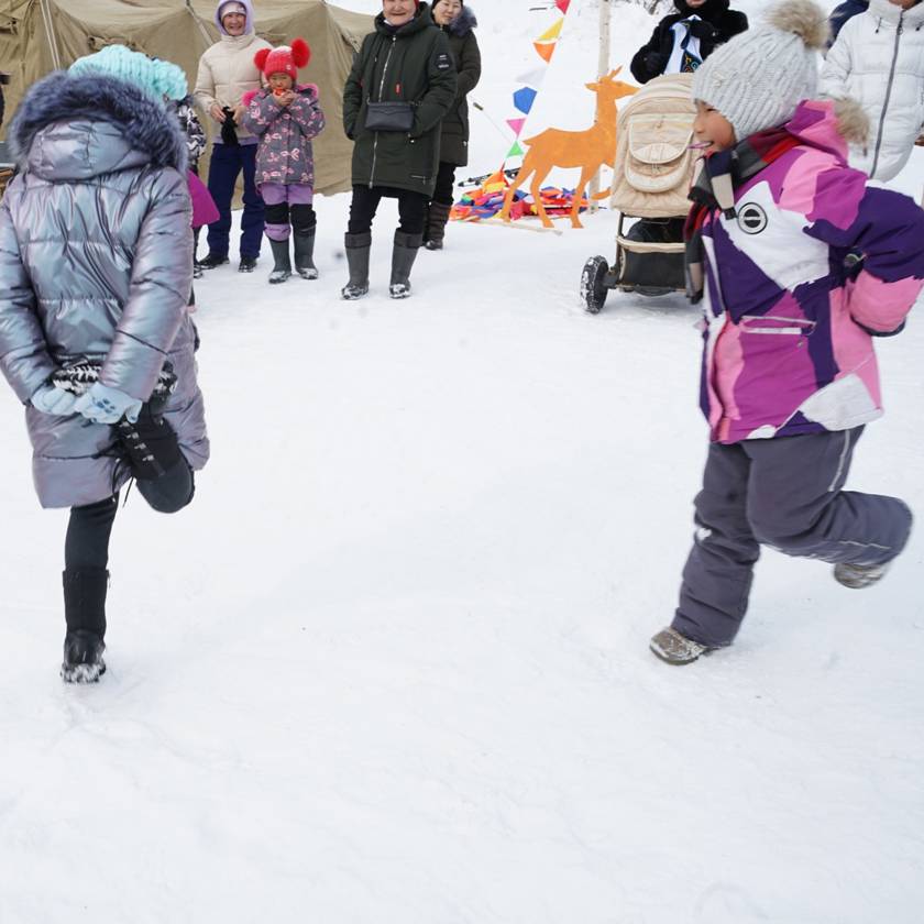 Без внимания на празднике не остался никто. Пока мамы и жены болели за своих охотников, ребятишки в этот момент тоже соревновались между собой: перетягивали канат, прыгали на одной ноге, бегали в мешках и катались на ватрушках. За активное участие всех юных спортсменов наградили сладким пирогом.