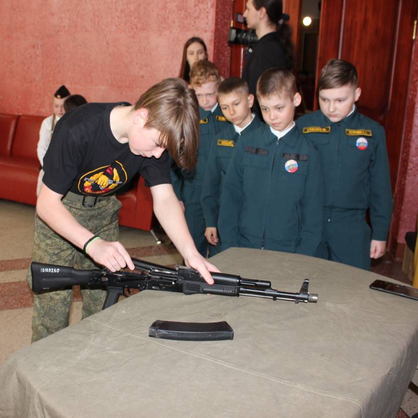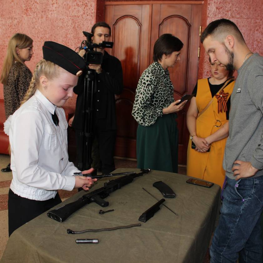 У ребят старшей возрастной категории было задание посложней — разборка автомата Калашникова на время. Армейский норматив — 30 секунд. Это испытание предстояло пройти только двум кадетам Алексею Макаркину — ученику шестой школы, а также Софии Коробковой из третьей школы поселка Эльбан. В 12 лет удержать оружие сложно, но, у молодого человека этот этап трудностей не вызвал, ведь в своем классе он быстрее всех обращается с оружием и даже имеет собственный рекорд. Для Софии, наоборот, испытание вызвало сложности — сказалось отсутствие достаточного количества практики. Но, несмотря на это, девочка взяла себя в руки, и сквозь слезы волнения выполнила задание. Жюри отметило, что этот поступок достоин кадетского звания.