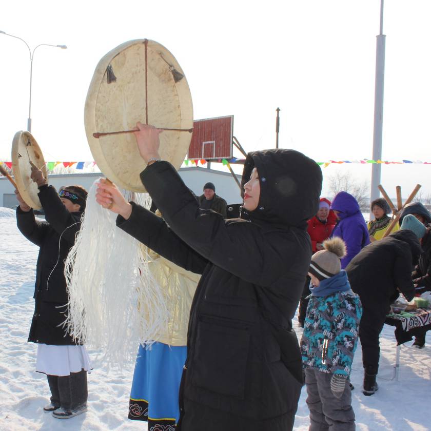 Позже праздник перенесли в здание школы. С 2014 года она носит имя Понгсы Киле. Всего здесь обучается около 90 ребят. На протяжении многих лет школа является центром культуры села. Здесь гостей ожидала насыщенная концертная программа, но прежде всем желающим предложили отыграть шаманские ритмы на священном нанайском бубне.