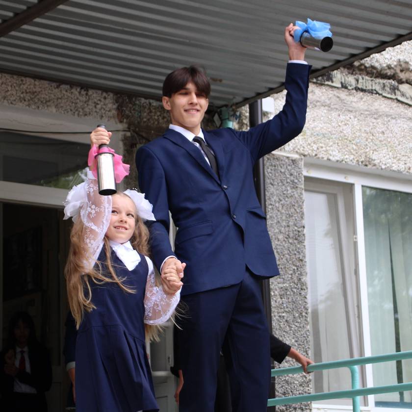 Первый в учебном году звонок дали представители семьи Курочкиных. Старший сын в этом году пошел в одиннадцатый класс, а его сестра — в первый.