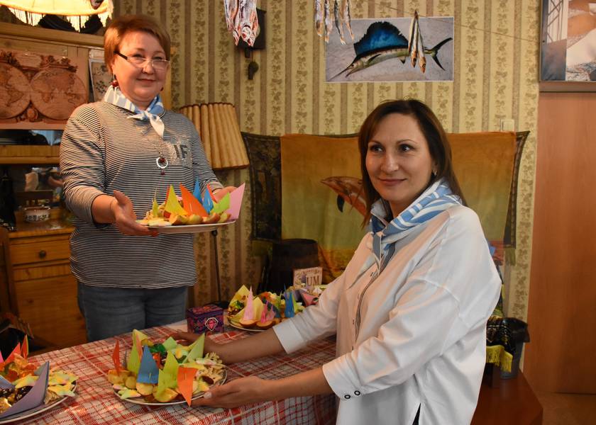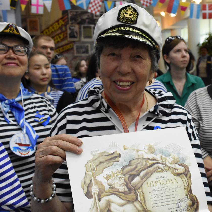 — Мы занимаемся в декоративно-творческой мастерской при нашей библиотеке. Сегодня пришли не в полном составе, но семеро самых отважных здесь. Надели тельняшки, подготовили головные уборы. Эту одежду всегда берем с собой, когда ездим отдыхать на море. Одна из участниц нашей команды много лет назад во время круиза пересекла экватор, и ей дали соответствующий документ. Он хранится у нее до сих пор.