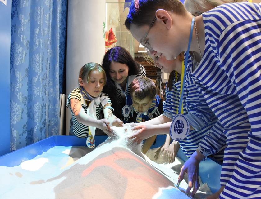 Все участники «Ночи в музее» встретились с Нептуном, который окропил их водой и нарёк моряками. Команды повторяли движения со сказочным персонажем, из которых потом получился энергичный морской танец.