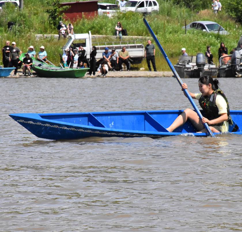 После групповых заплывов в каждом из экипажей выбрали самых сильных мужчин и женщин, которые преодолели дистанцию в одноместных лодках-оморочках. Раньше рыбаки на таких лодках проверяли сети. Нужно отдать должное спортсменам: все добрались до финиша, и никто не перевернул лодки.