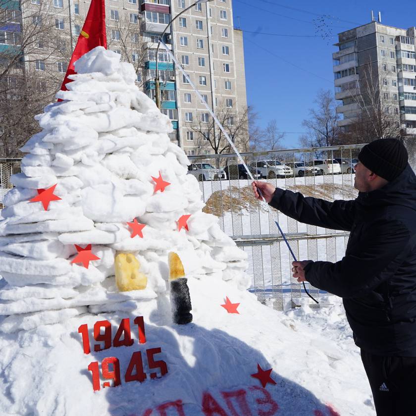 — Отряд «Соседи» прибыл на смотр снежных достижений. Сегодня мы докажем, что снег в наших руках может превратиться в несокрушимую силу. Знакомьтесь, наш новый сосед Георгий — настоящий богатырь и защитник всего дома. Мы возвели не просто башню, а символ мужества, стойкости и единства. Каждая снежинка в данном сооружении — это наша воля к победе.