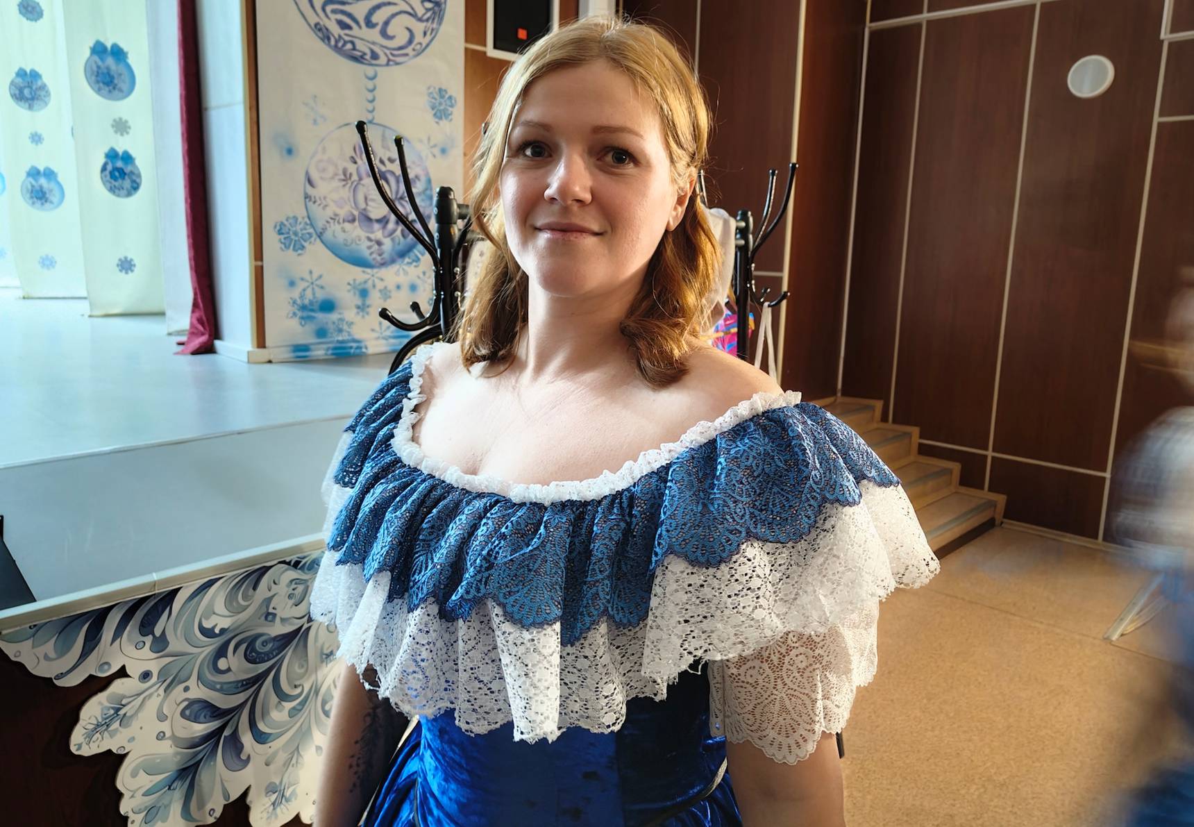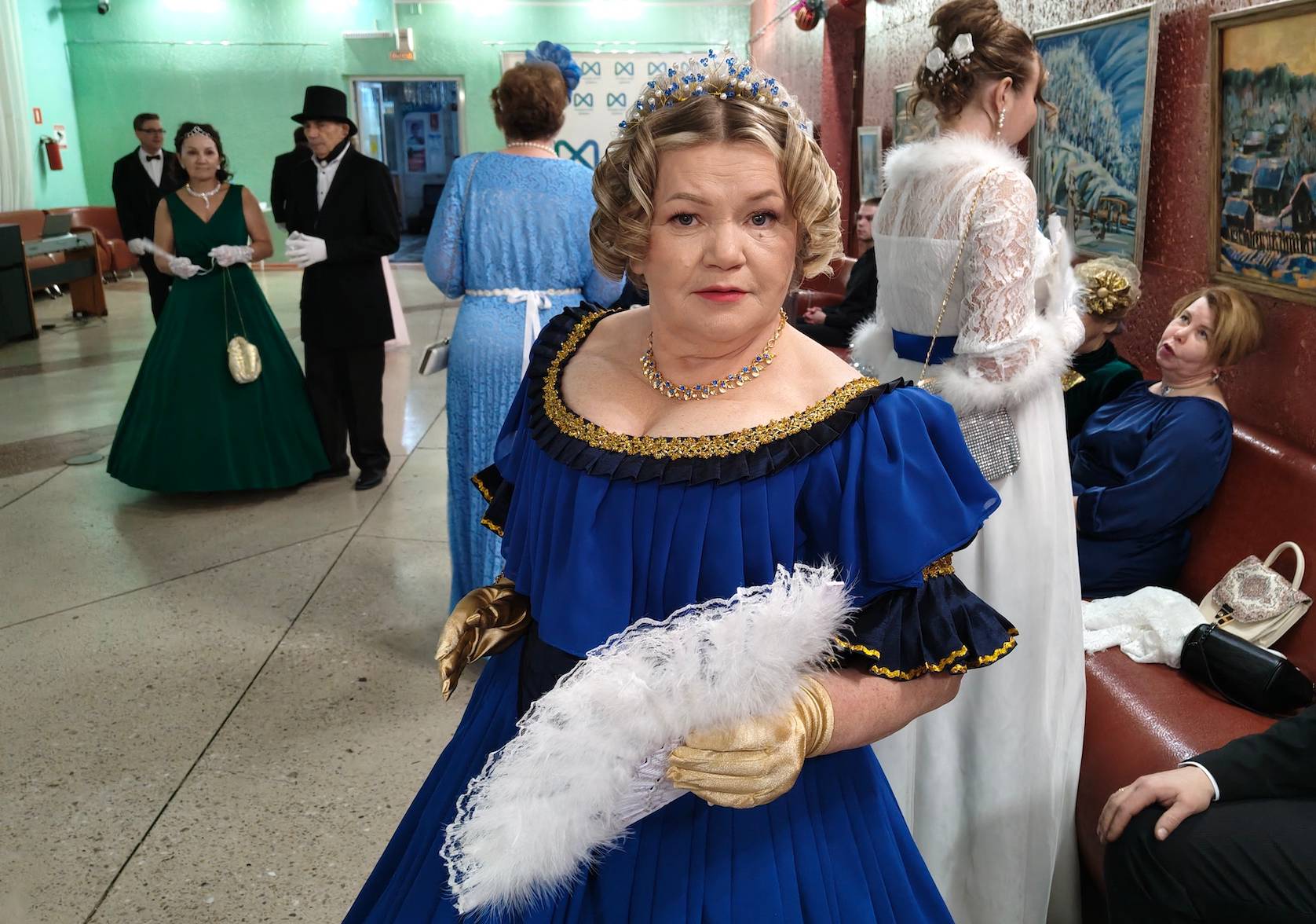 Дамы были одеты в пышные бальные платья, которые они шили специально для мероприятия. Антонина Евстифиева выбрала многослойный наряд синего цвета, над которым работала более двух месяцев.