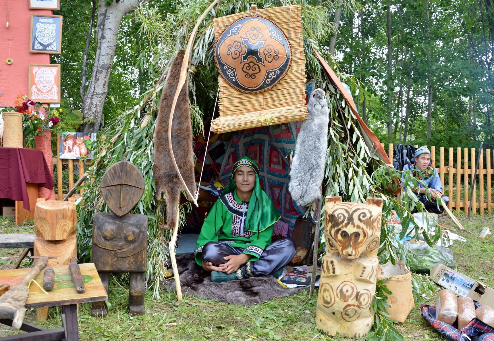 Участники делегаций устанавливали хомараны — летние жилища нанайцев, собранные из тальника ветвями вниз, чтобы в случае дождя вода стекала, не попадая внутрь. Рядом с каждым хомараном стояли деревянные сэвэны — хранители рода, добрые духи очага и охоты. В отличие от славянских ритуальных кукол, у сэвэнов есть лица, но нет рук: духи не работают, поэтому и руки им не нужны, говорят нанайцы. В самом жилище очень много орнаментов: ведь помимо сэвэнов в нанайской мифологии есть бусэу — злые духи, досаждающие людям на каждом шагу. Узоры мешают им проникнуть в хомаран.