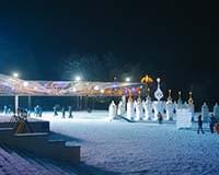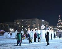 В центре площади, вокруг главной елки, расположится ледовый городок, созданный руками амурских умельцев в рамках конкурса ледовых скульптур «Волшебные узоры». Здесь для малышей построят еще несколько небольших горок и лабиринт.