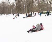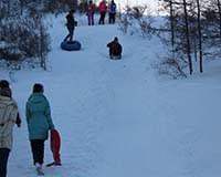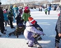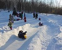 Отправляясь кататься, не забудьте взять санки-ледянки для всей семьи. А если дома таких не нашлось, новые можно купить совсем рядом, в магазинах «Эрудит» и «Галантерея».