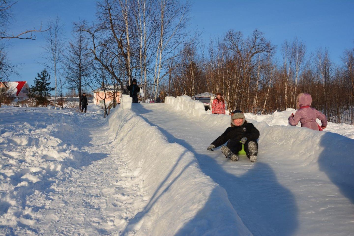 Первая — для любителей детского экстремального отдыха: ледяная высотой 4 метра и длиной 16. Кататься на ней можно совершенно бесплатно (если, конечно, хватит смелости).