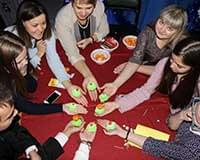 Чтобы никто не замерз и не запросился домой раньше срока, прихватите с собой термос с горячим чаем. Но даже если вы забудете о нем, одевая детей на горку, не беда — попить чайку с блинчиками и погреться можно в одном из кафе рядом с площадью — например, в «Мармеладе» или в новом заведении «Мука и мед».